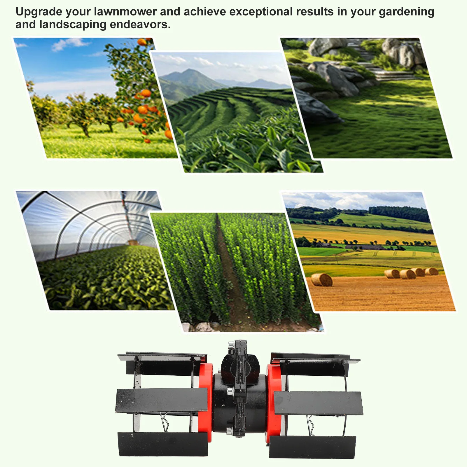 1. Improved Performance: Enhance the performance and versatility of your lawnmower with our universal lawnmower attachments. Upgrade your lawnmower and achieve exceptional results in your gardening and landscaping tasks.2. Effortless Weeding: Say goodbye to heartbreaking manual weeding. The weeding wheel effortlessly clears unwanted weeds and vegetation, saving you both time and energy. No more strenuous tilling of compact soil.